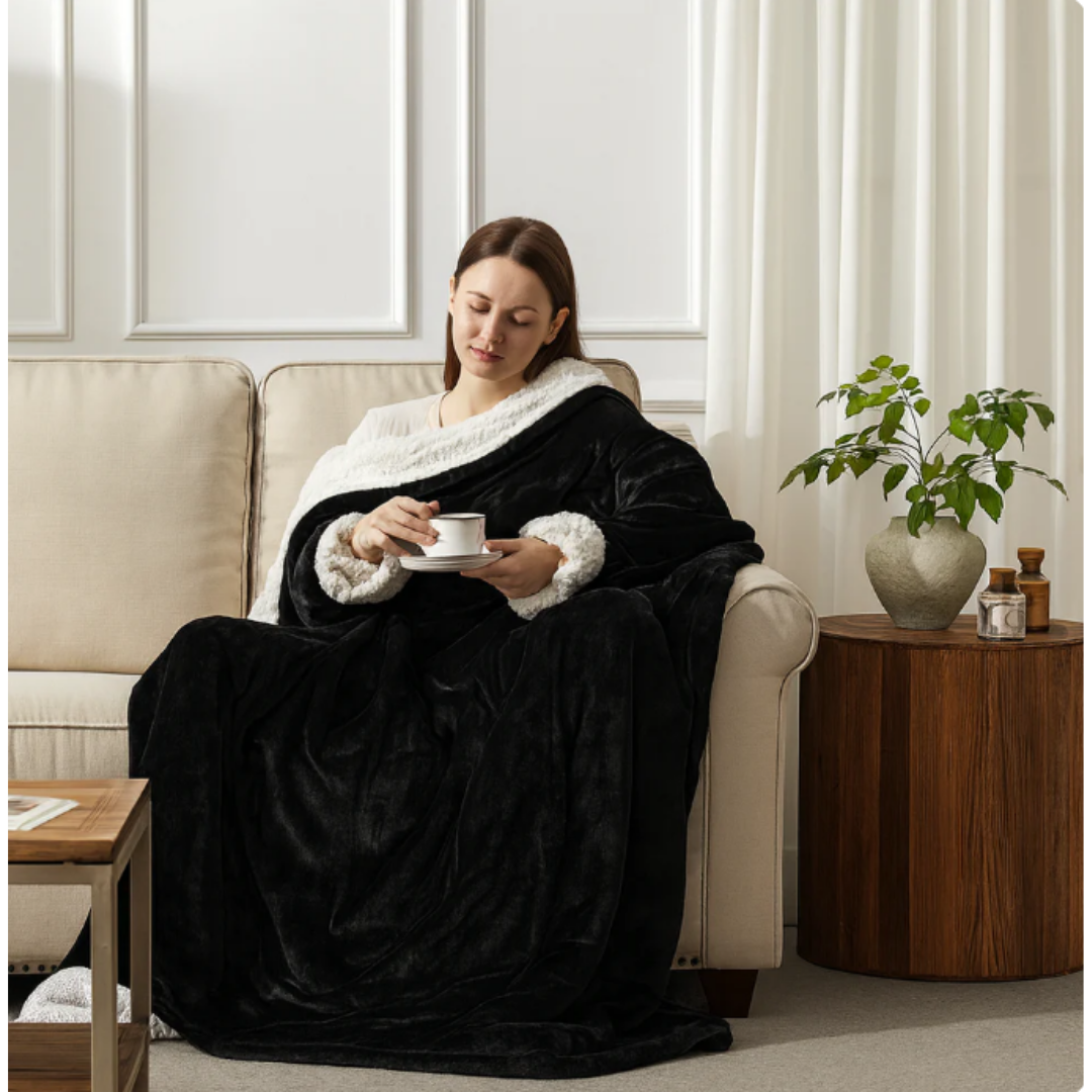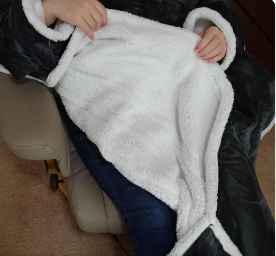 Está fabricada con sherpa ultrasuave en el interior y felpa premium en el exterior para ofrecer calidez sin picores.