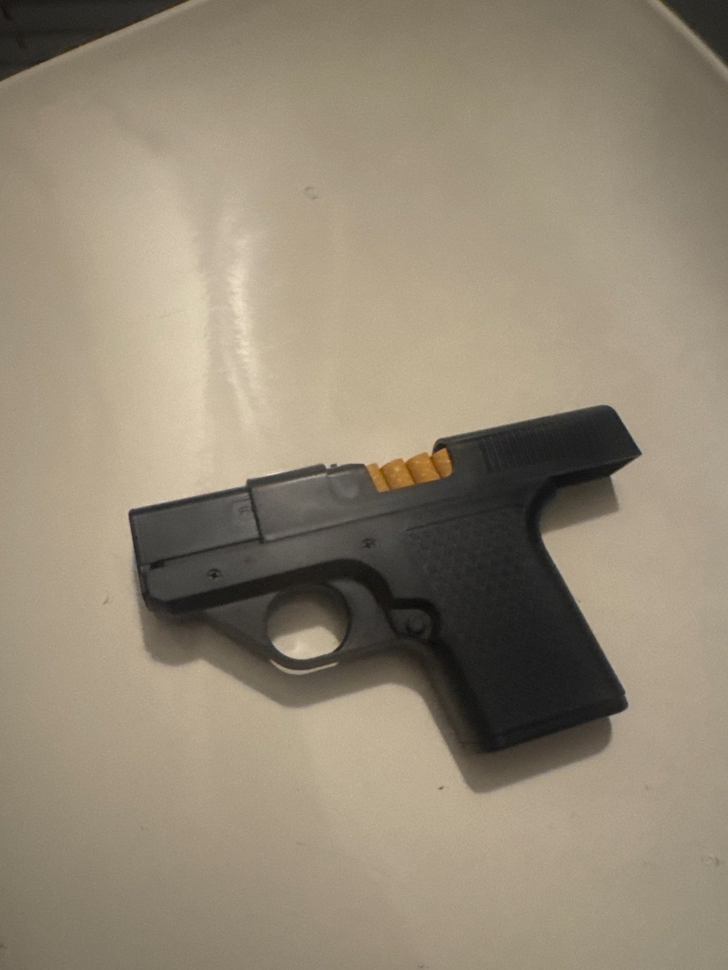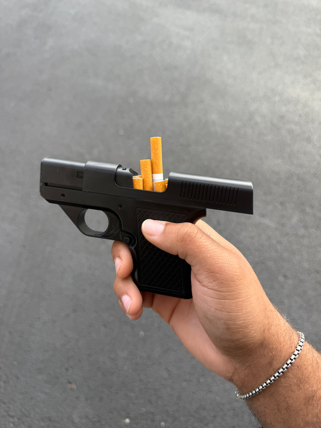 El depósito interno está diseñado para almacenar cómodamente hasta 10 cigarrillos de tamaño estándar. Se mantienen protegidos y listos para salir con un solo movimiento de la corredera.